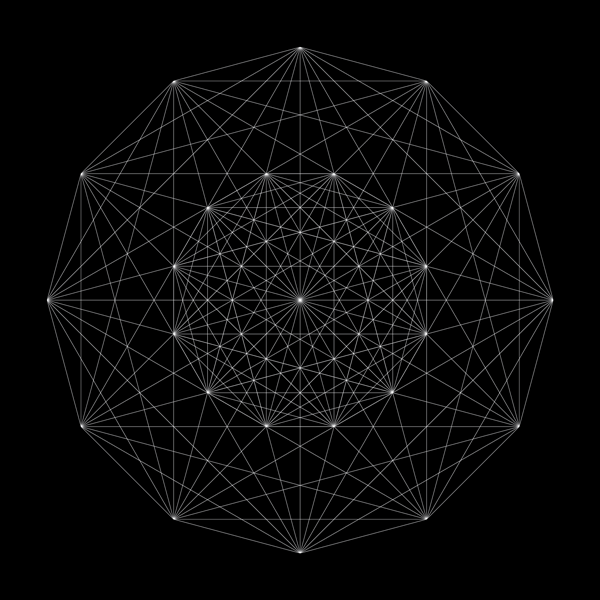 This is a 2D projection of the root system E8. E8 is one of the most complex and fascinating mathematical structures in the field of Lie algebra and group theory.